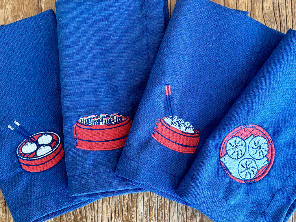 Bring charm and sophistication to every meal with this set of four embroidered napkins. Each napkin showcases a different embroidery pattern.